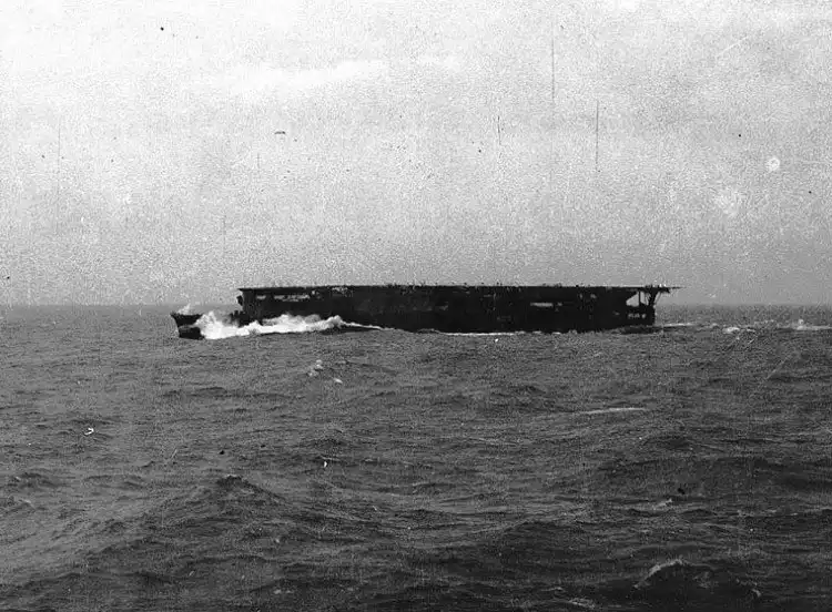 Около 20 часов авианосец перевернулся и затонул. По наиболее распространенной версии, общие человеческие жертвы составили около 600 человек, но часть историков приводит более скромную цифру в 120 человек. В ходе налета группы Фелта не был сбит ни один из американских самолетов.