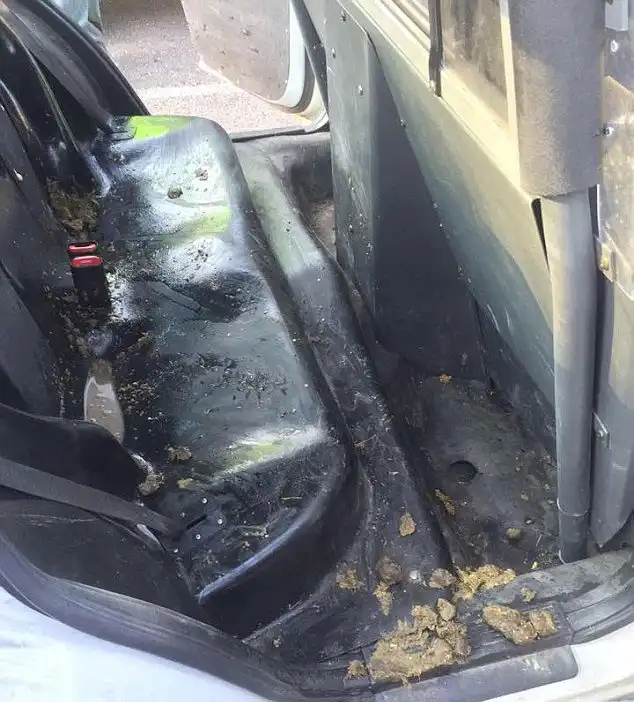 В сети появилась забавная фотография «улыбающегося» поросенка, сидящего на заднем сиденье полицейского служебного автомобиля. Позже появился второй снимок, на котором видны последствия транспортировки животного.