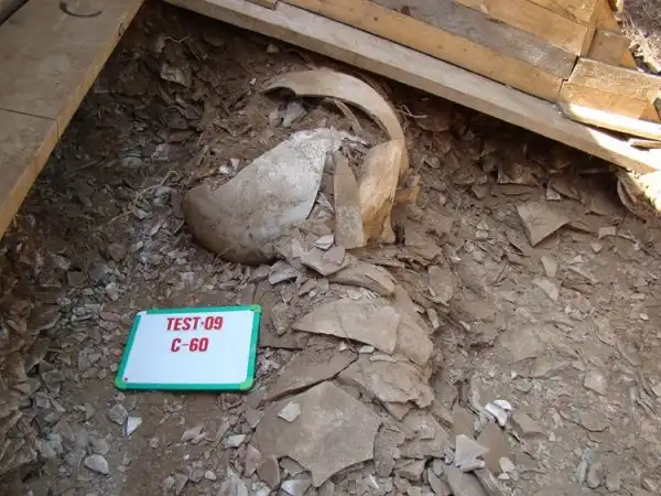 Место для вывоза амфор было тщательно спроектировано, и, предположительно, управлялось государственными административными властями. Раскопки, проводившиеся в 1991 году показали, что в основе холма выложены ряды террас с подпорными стенками из почти целых амфор, набитых черепками для закрепления на месте. Горло амфоры в этом случае разбивалось. После завершения укладки первого слоя амфор, был заложен второй слой в 60 см, равный также диаметру амфоры типа Дрессель 20.
