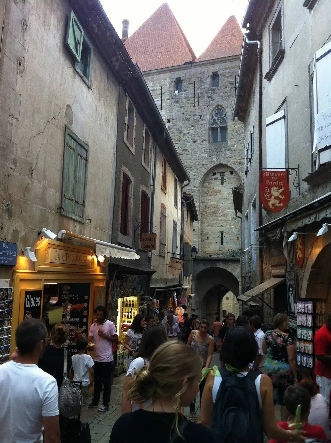Если Вам, уважаемый читатель, представиться такая же возможность, как и мне, побывать в Каркассоне, обязательно посетите цитадель днем и поздно вечером. Причем вечернюю прогулку начните со Старого моста XIV века через реку Од. Пройдите к подножью крепости и среди полной темноты и тишины, Вы услышите звук только своих шагов. А над Вами будет возвышаться громада Каркассонских стен и башен, умело подсвеченных. Представьте себя среди штурмующих эту неприступную твердыню и поверьте большего впечатления Вы не получите нигде! Каркассон не оставит Вас равнодушным. Уж поверьте мне. N.B. В Каркассоне часто снимают фильмы исторического и приключенческого жанра, в частности, «Робин Гуд — принц воров», «Мушкетер» и других.