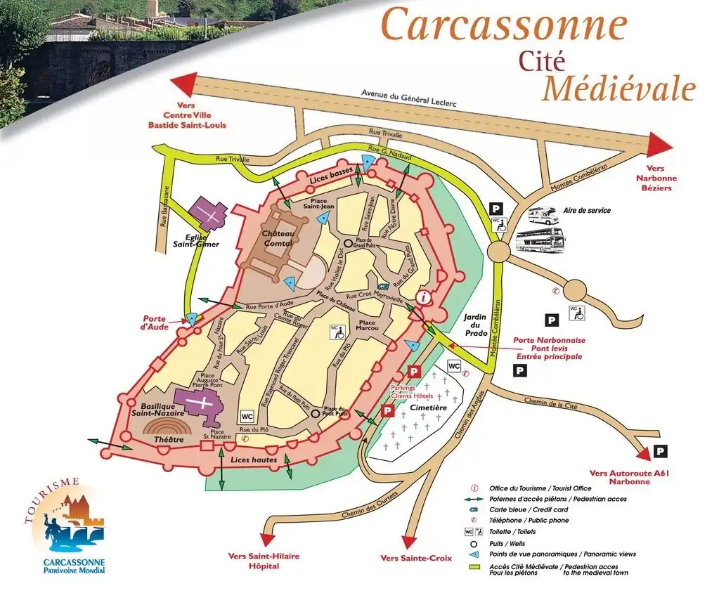 Ни одна крепость, ни один замок не обладал такой мощной 2-х рядной 3-х километровой стеной с пятидесятью двумя башнями, один вид которых заставлял трепетать любого. Это был последний реликт века гигантов, ушедших в небытие. Каркассон. Это- «книга в камне», в которой прослеживаются история каждой эпохи и по которой можно наилучшим образом изучать историю военного зодчества от древних римлян до XIV века.