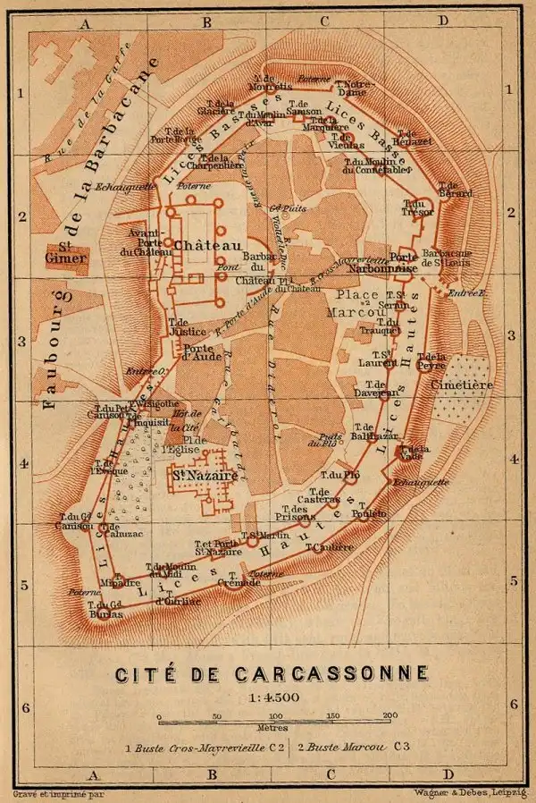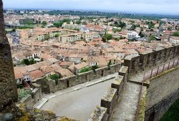 После смерти Карла Великого его империю стали сотрясать дробления, и феодальный суверенитет привел к тому, что Лангедок постепенно приобрел независимость. В начале XIII века эта местность не входила в состав Французского королевства, имела протяженность от Аквитании до Прованса и от Пиренеев до Керси. Итак, фортификации вестготов и франков воздвигались все дальше от первоначальной римской кладки, кое-где подмяв ее под собой. Вторая стена, возникшая позднее, была смертельной ловушкой для тех, кто пытался захватить город, — оказавшиеся между двумя стенами уничтожались градом камней и стрел. Расстояние между башнями внутренней и внешней стен располагались на длину полета стрелы. С постоянным усовершенствованием стрелкового оружия «смертельная ловушка» становилась все более гибельной.