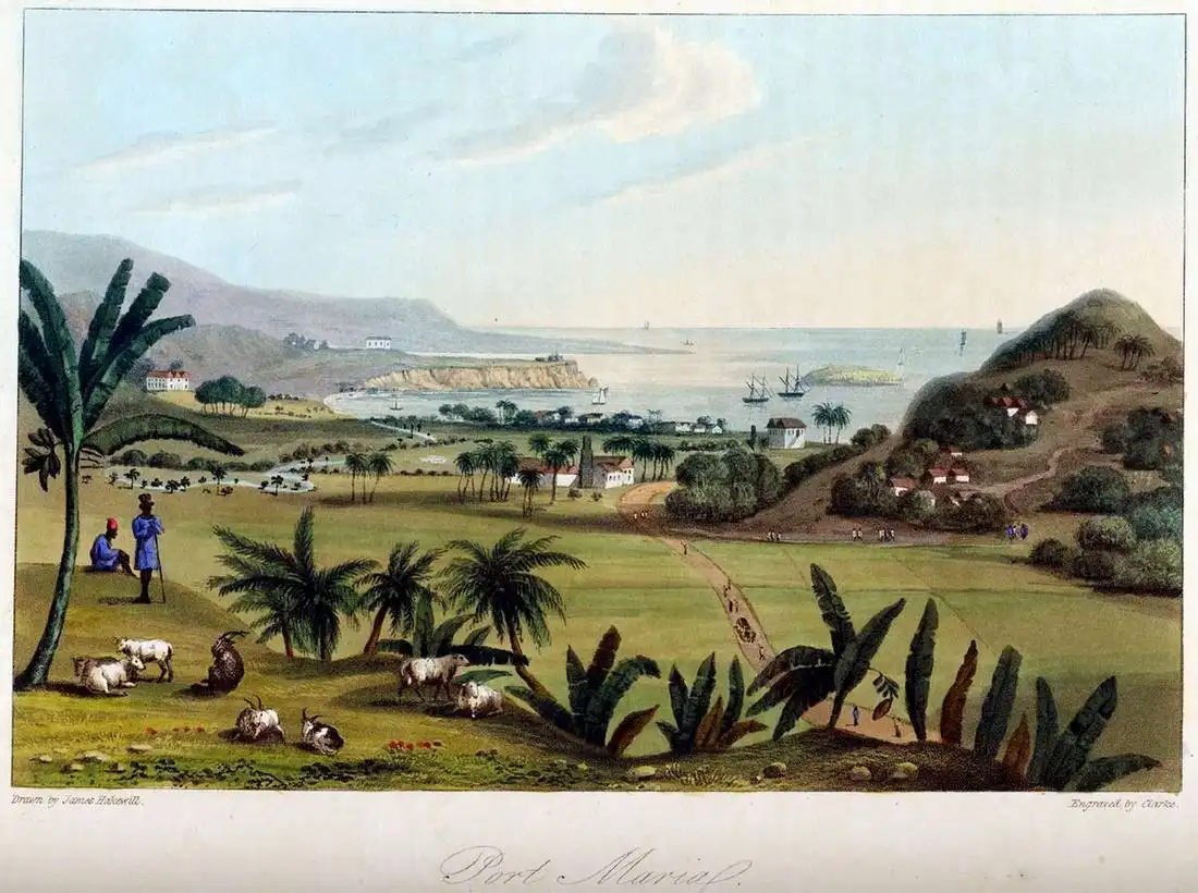 Плантация по выращиванию и переработке сахарного тростника Port Maria (Ямайка, 1820 год)
