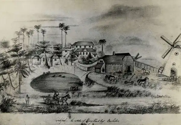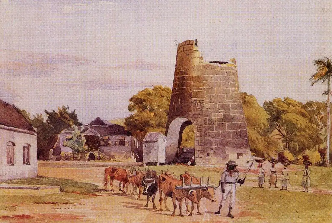 Плантация по выращиванию и переработке сахарного тростника (Барбадос, 1830-е годы)