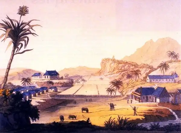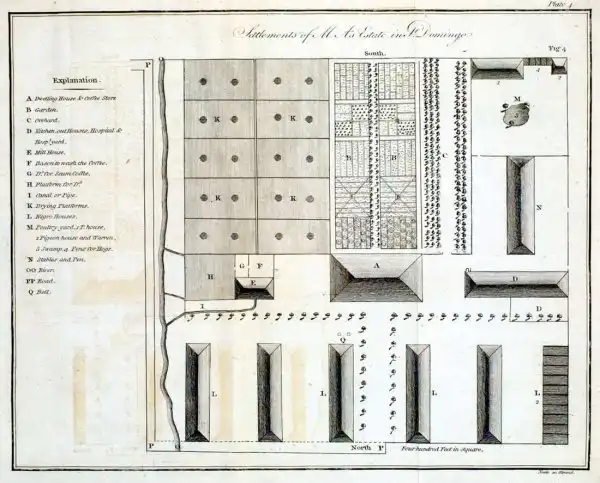 Плантация по выращиванию и переработке сахарного тростника St. George Parish (Ямайка, 1820 год)