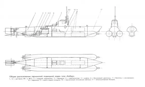Общее расположение подводной лодки типа "Бибер"