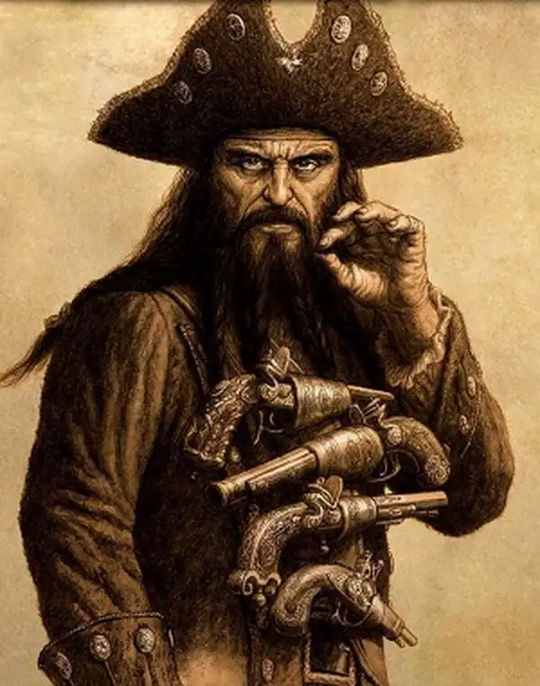 Углубившись в изучение историю карибских пиратов, он получил подтверждение своей догадки о связи этого острова и пиратской песни. Эта песня была связана с Эдвардом Тичем, известном как Черная Борода, имя которого гремело в начале XVIII века. Своей жестокостью он наводил ужас даже на пиратов, поэтому неудивительно, что на его корабле вспыхнул мятеж. Главарю удалось подавить мятеж, и он решил, как это было принято у вольной братии «джентльменов удачи», высадить пятнадцать человек мятежников на острове Сундук Мертвеца. Несчатным вручили по бутылке рома, сбросили им связку сабель. Жестокий пират прекрасно понимал, что обрекает мятежников на мучительную смерть, так как ром только усиливал жажду, а на острове отсутсвуют источники воды. Тич не сомневался, что пираты, перепившись, пербьют друг друга.