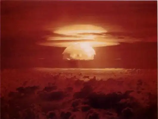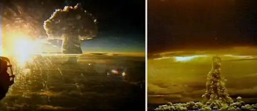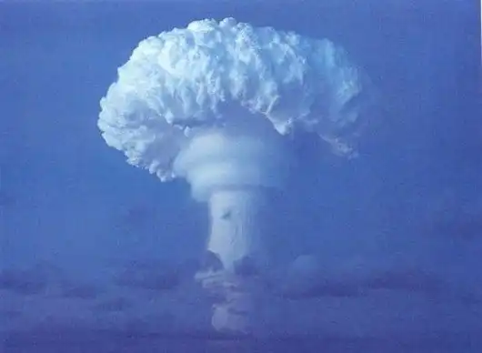 Один из самых мощных взрывов термоядерной водородной бомбы на счету США – операция “Кастл Браво”. Мощность заряда составила 10 мегатонн. Взрыв был произведен 1 марта 1954 года на атолле Бикини, Маршалловы Острова.