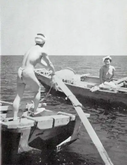 Ныряльщицы различаются по способу добычи морских животных. Первых называют «фунадо», что по факту человек с лодкой. Это ныряльщица, которая работает с напарником – «томаи-сан». При этом они вдвоем выплывают на какое-нибудь место в море на лодке и начинают свою подводную охоту. При этом «Ама» обвязывает себя грузом, чтобы быстрее достигнуть дна, а томаи-сан поднимает ее на поверхность посредством троса.