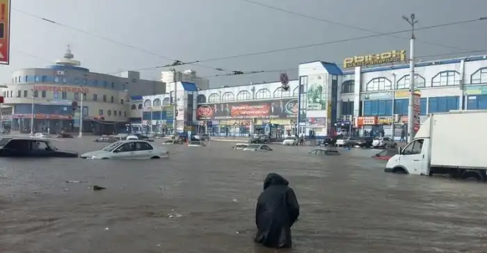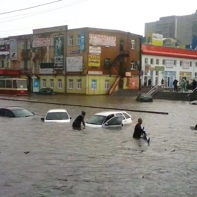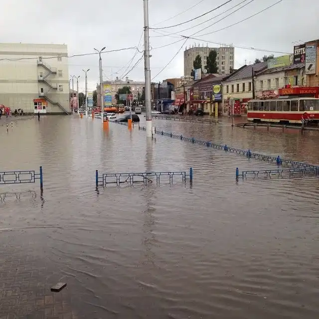 В субботу в Курске прошел сильный ливневый дождь, из-за которого в городе произошло наводнение. Ливневая канализация не справлялась с потоками воды, и потому в некоторых районах города вода доходила до крыш автомобилей. В центре люди передвигались по пояс в воде, передвижение транспорта было парализовано, из-за отключения электричества не работали светофоры. Оценить масштаб наводнения помогут фотографии местных жителей из соцсетей.
