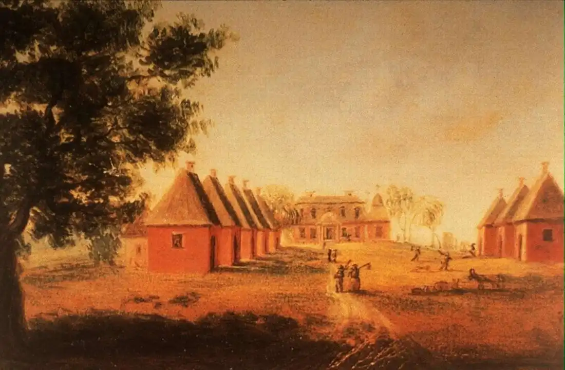 Жилища рабов на тутовой плантации (штат Южная Каролина, 1800 год)