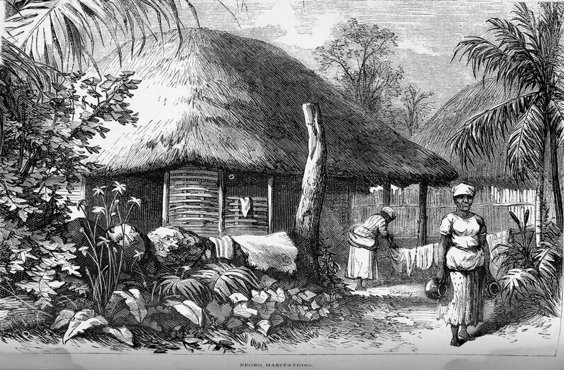 Общий вид на поселение чернокожих рабов (Куба, 1853 год)