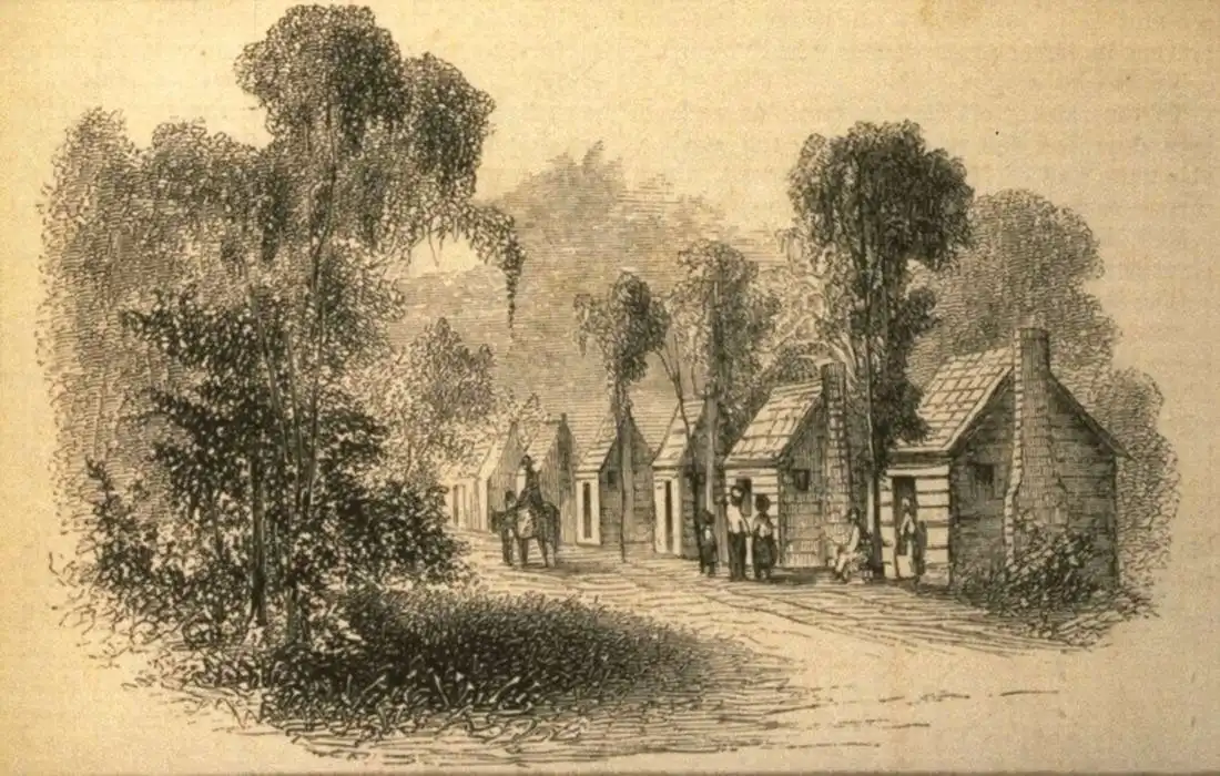Жилища рабов на рисовой плантации (Юг США, 1859 год)