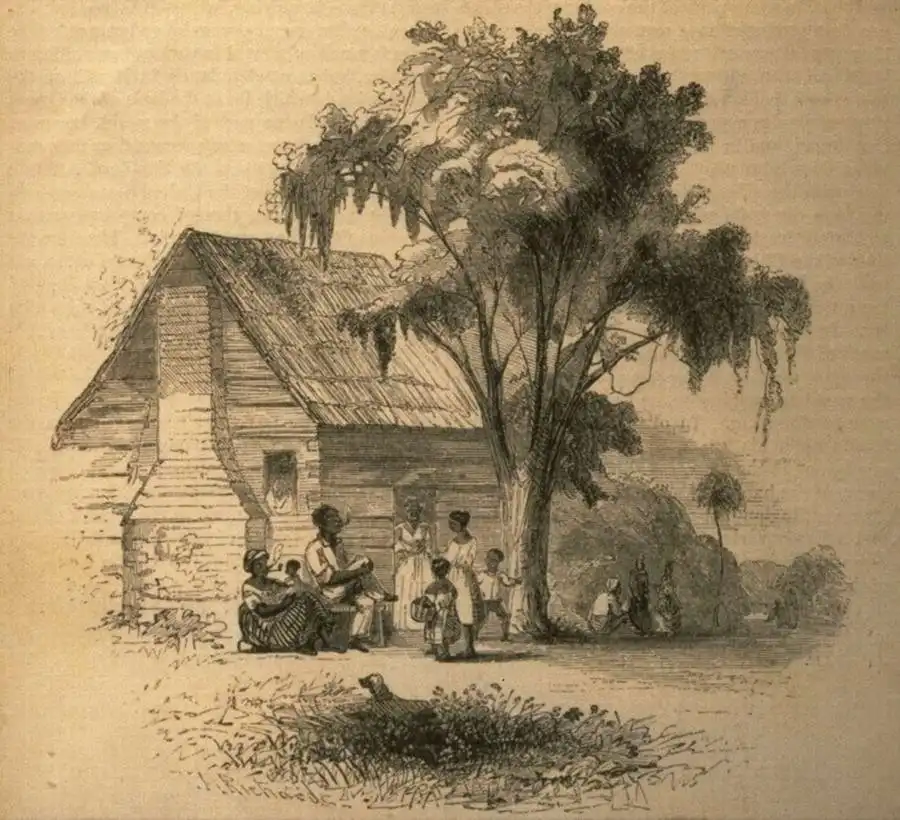 Жилище чернокожих рабов на рисовой плантации (Юг США, 1859 год)