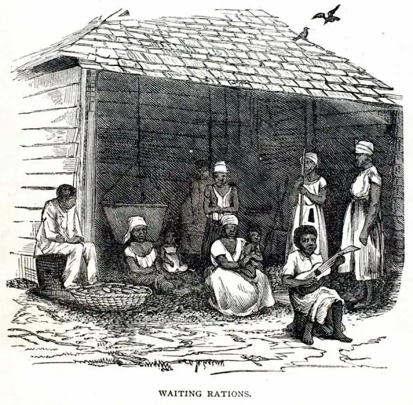 Рабы в ожидании начала раздачи пищи (Куба, 1866 год)