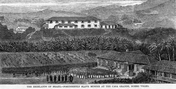 Общий сбор рабов во дворе поселения (Бразилия, 1867 год)