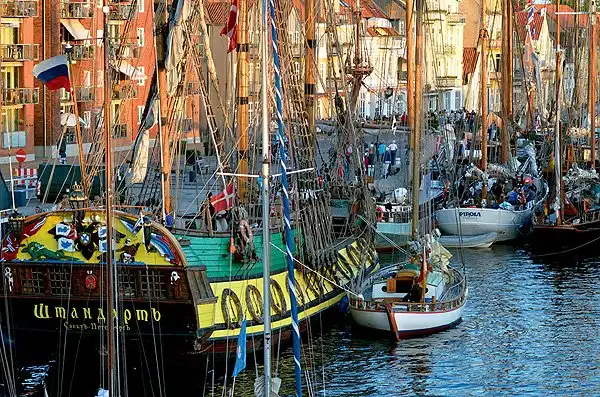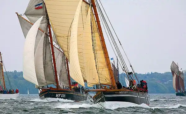 С берега эти хитрости незаметны. Зрители завороженно наблюдают за тем, как неторопливо и величественно парусники движутся к линии финиша. Часть из них — свои, фленсбургские, которые в обычное время стоят в местной гавани и служат плавучими музеями, другие — заграничные гости фестиваля. Потому в дни проведения регаты городок наполняется иностранными матросами и любителями парусного спорта из разных стран.
