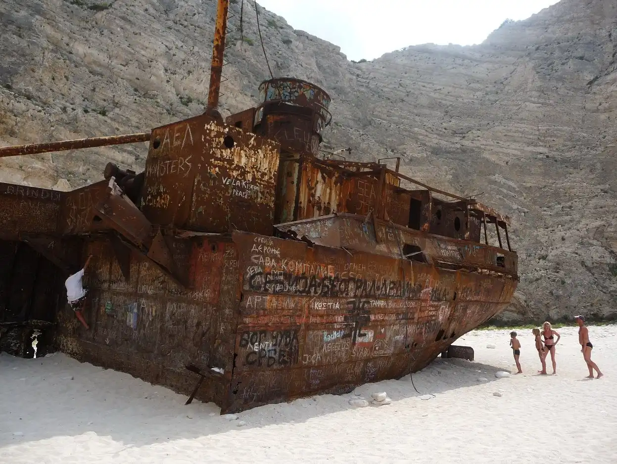 Есть у Навагио и своя маленькая историческая достопримечательность, давшая бухте второе название – Бухта контрабандистов. Туристов со всего мира привлекает огромное грузовое судно «Панайотис», полуразрушенное, ржавеющее на берегу уже несколько сотен лет. Считается, что корабль когда-то принадлежал контрабандистам, но не пережил очередной поломки и был выброшен на берег. Контрабандисты не сумели его починить, и теперь «Панайотис» обрастает ржавчиной на одном из красивейших пляжей греческих островов, окутывая его романтической исторической дымкой. Или вот еще одно трактование этого события: