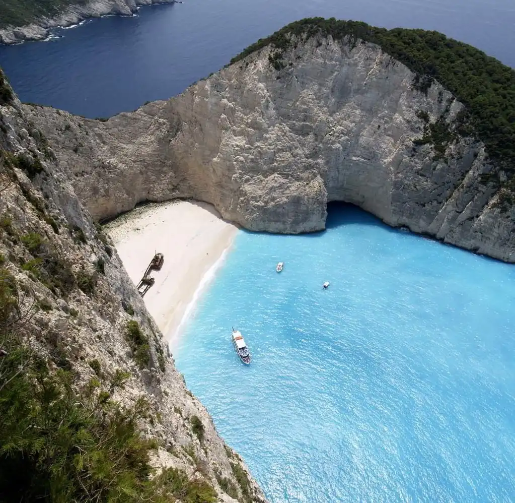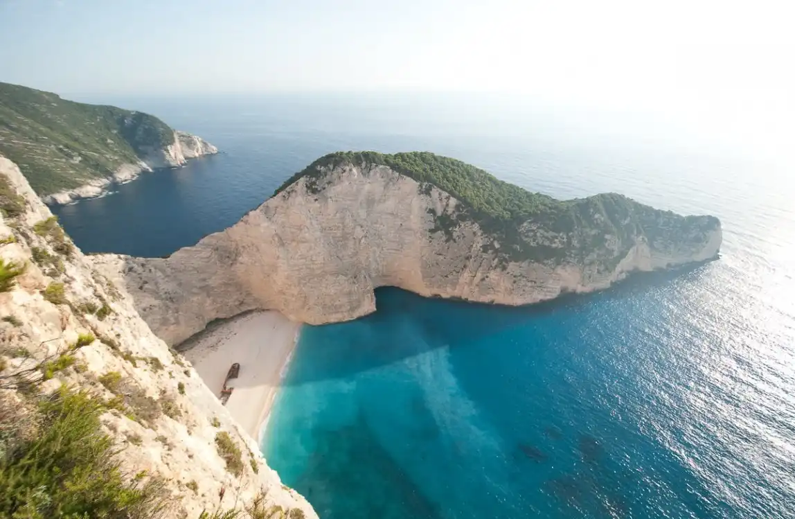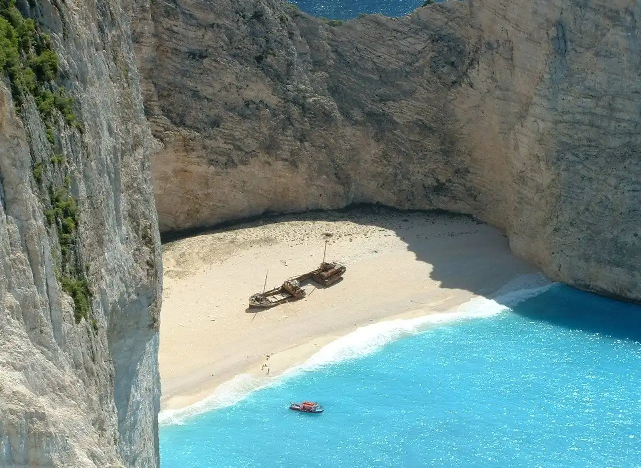Красивейшая бухта Навагио – одна из самых часто встречающихся иллюстраций красот греческих островов. Светлые, практически до белизны, прибрежные скалы, мягкий песок цвета белого золота и лазурная, чистая до прозрачности морская вода восхитят любого туриста.
