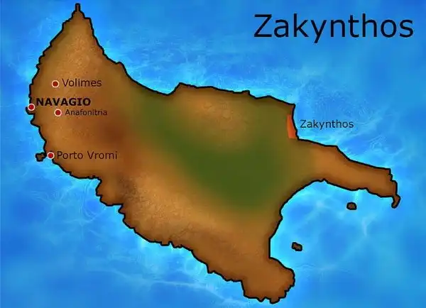 Легендарный Закинф (Zakynthos, Zante) - самый южный из шести крупных Ионических островов, лежит в 15 км южнее Кефалинии и в 18 км от западного побережья Пелопоннеса.
