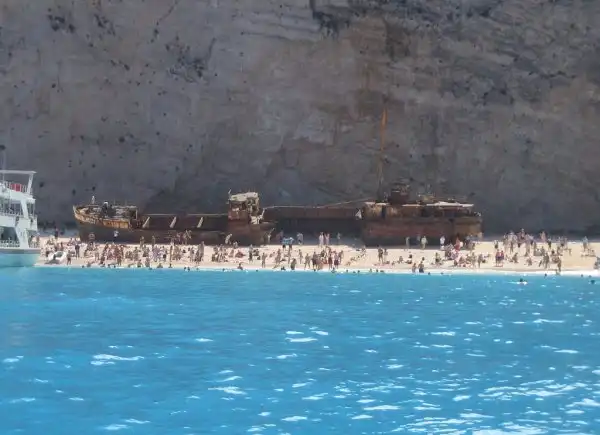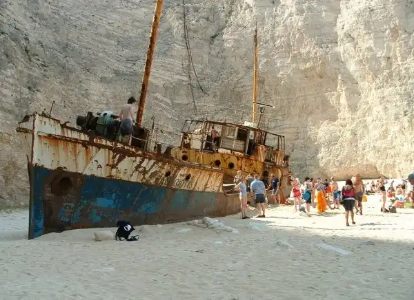 "50 лет назад возле острова Закинтос (Греция) потерпела крушение баржа, перевозящая контрабанду из Италии. На следующий день местные жители получили от Посейдона необычный подарок: сотни тысячи покачивающихся на волнах пачек сигарет. А на берегу, зарывшись носом в песок, беспомощно лежало судно. С тех пор место кораблекрушения стало очень популярно