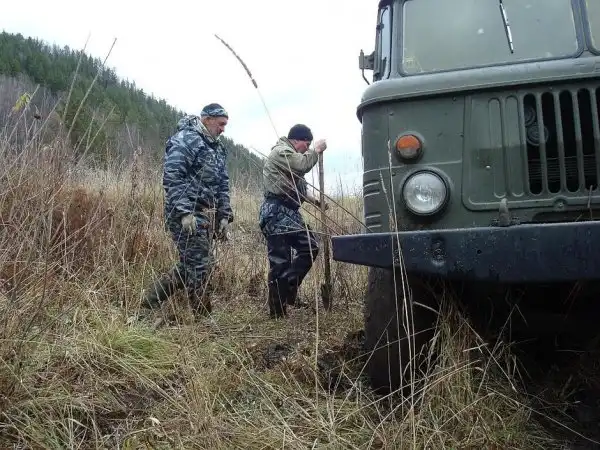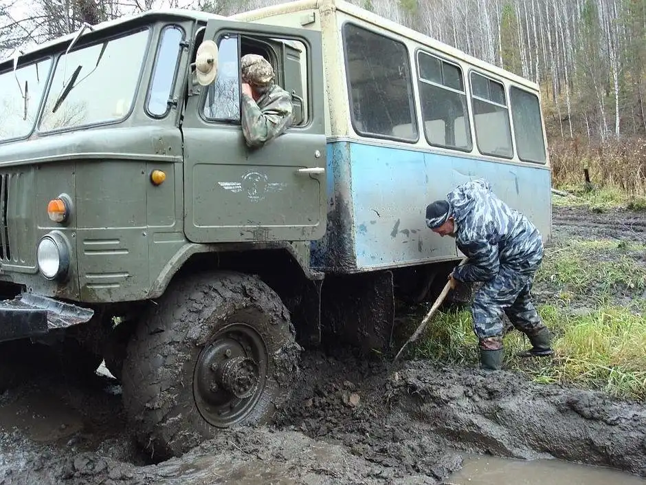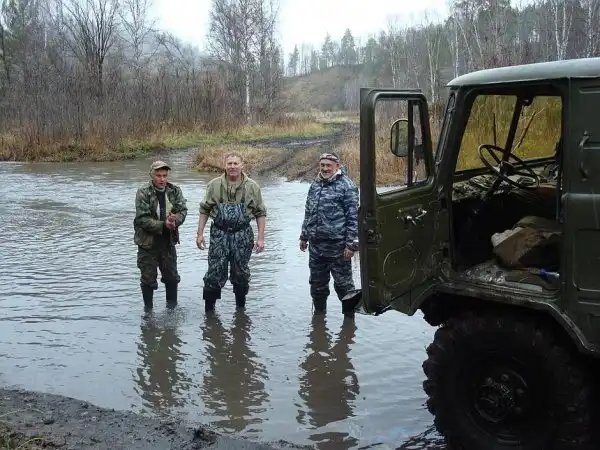 До избушки — зимовья охотников — мы добирались девять часов. Приехали настолько уставшие, как будто сами всю дорогу этот ГАЗ-66 толкали! Переночевали, а рано утром — снова в путь. Снова через броды… На одном из бродов мы застряли. Машина погружалась в илистое дно все глубже и глубже. Вода уже начала заливать будку машины. Мотор заглох…