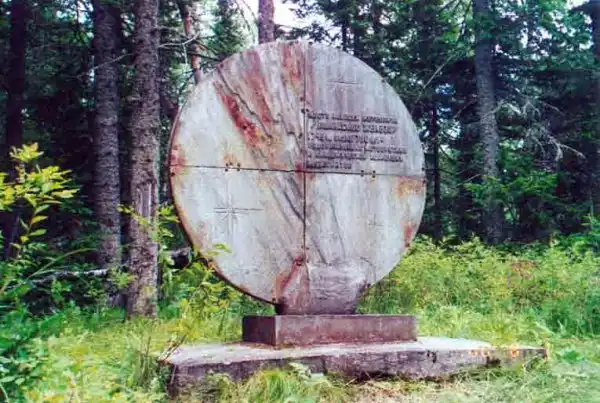 Как ни странно, но чем ближе к вершине, тем быстрее мы двигались! Дышалось легче, силы прибывали и прибывали. У нас словно второе дыхание открылось. И к памятному знаку — двухметровому чугунному диску, на котором изображены полет болида и упавший метеорит, мы вышли, уже практически придя в норму, делали несколько снимков на память и замолчали… Каждый почувствовал, что прикоснулся к очень загадочному и древнему событию — согласитесь, неизвестно, откуда прилетел сюда метеорит, как и то, сколько миллиардов лет назад… Увы, побродить по сопке в поисках обломков метеорита не удалось — мы хотели вернуться домой засветло, да и вряд ли мы что-либо отыскали бы под устлавшим вершину снегом…