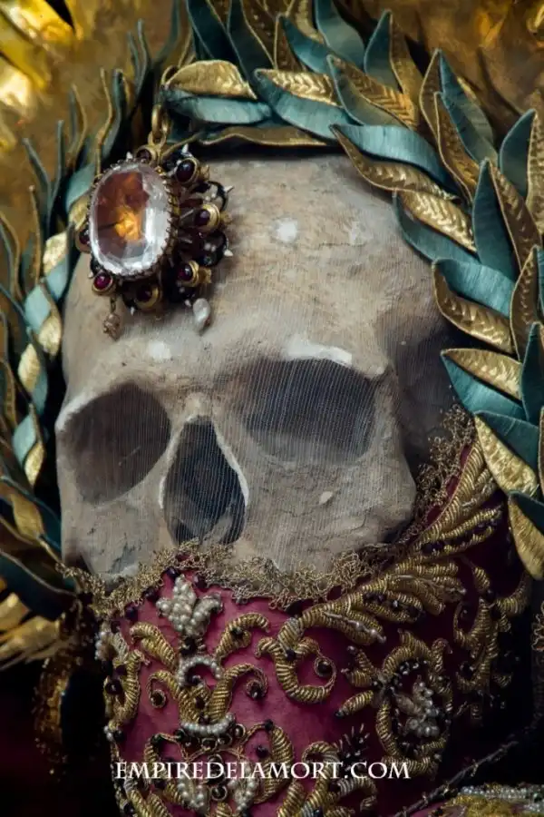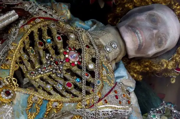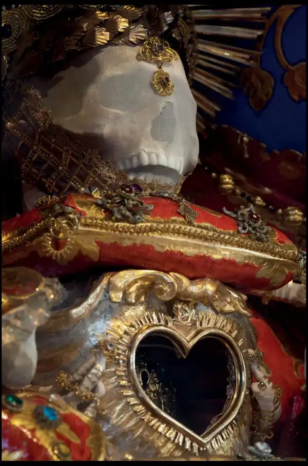 В 1578 году Римская католическая церковь приняла решение вскрыть гробницы первых христиан, и найденные там скелеты, кости и черепа передала разграбленным протестантами храмам в Германии и Австрии. Священники наряжали останки святых в дорогие одежды и украшали золотом и камнями. Американский доктор Пол Кудонарис сделал снимки этих катакомбных святых.