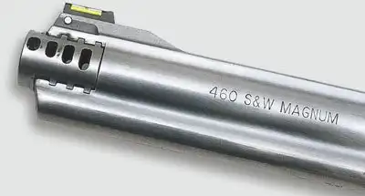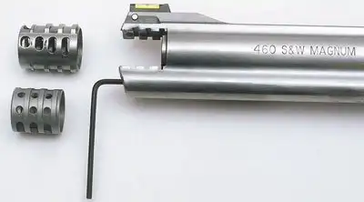 Сменный компенсатор позволяет 460XVR использовать различные барабаны: Magnum пятидесятого калибра, Colt сорок пятого калибра и Casull калибра 454.