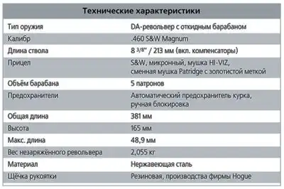 Компания Smith & Wesson помимо новой комбинации револьвера и патрона предложила общественности сразу несколько новинок. Прежде всего хотелось бы отметить самый скоростной крупнокалиберный патрон с начальной скоростью до 710 м/с, которая достигается посредством пули весом 200 гр/13,0 г. Одновременно новый .460 S&W Magnum представляет собой высокомощный патрон калиберной группы .45. К тому же из модели калибра .460 XVR можно стрелять патронами весом от 200 гр/13,0 г до 400 гр/ 26,0 г, равно как и более слабыми патронами калибров .45 Colt и .454 Casull.