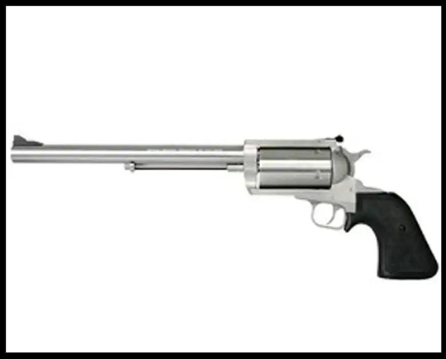 Револьвер Magnum Research’s Big Frame полностью изготовлен из нержавеющей стали, обладает 25-сантиметровым нарезным стволом, который обеспечивает несравненную точность при стрельбе свинцовыми пулями или пулями с оболочкой. Среди несамовзводного короткоствольного оружия, этот револьвер – самый мощный в мире.
