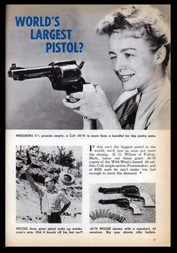 Вес знаменитого Кольта-Миротворца (Colt Peacemaker 45-70) составляет около 3,2 килограмма. Этот «оружейный монстр» стреляет винтовочными патронами.