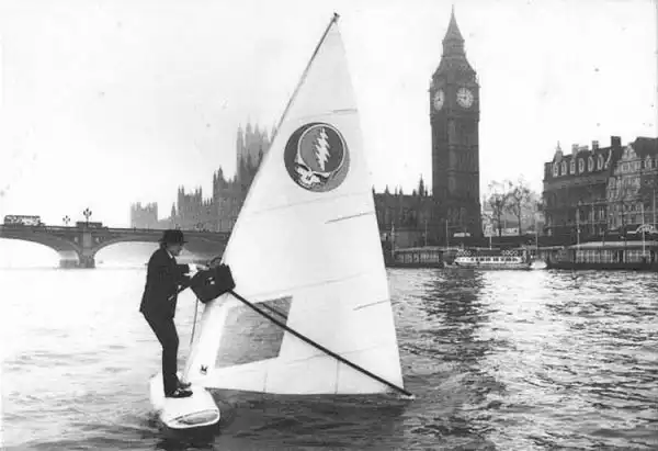 Можете себе представить себе реакцию людей, наблюдающий с Вестминстерского моста на человека в деловом костюме скользящего по Темзе на доске с парусом? Зрелище наверняка было незабываемое.