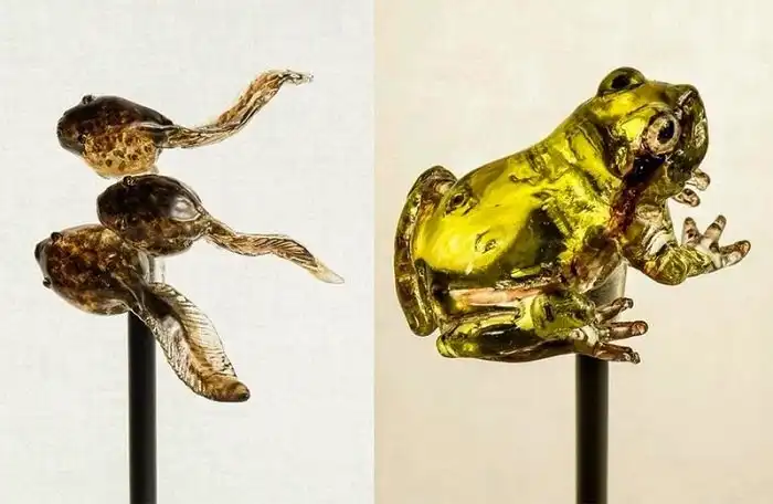Японский кондитер Shinri Tezuka занимается изготовлением леденцов на палочке, напоминающих весьма реалистичных рыбок, птичек и прочей живности. Леденцы приготовлены из смеси сахарного сиропа, крахмала и желатина. Shinri выбирает представителей животного мира, которые полупрозрачны в естественной среде: это чаще всего рыбки, головастики, лягушки, осьминоги.