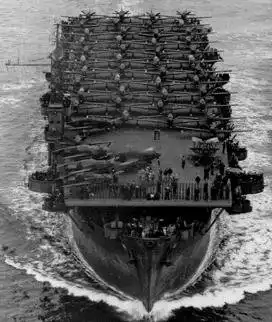 Место встречи было назначено далеко от берега, чтобы туда не могли долететь самолеты противника. Но у американцев был в запасе так называемый “baby flat-top” – транспортное судно со взлетно-посадочной полосой на палубе. Благодаря мини-авианосцу американская морская авиация могла совершать налеты на корабли противника далеко в открытом море.