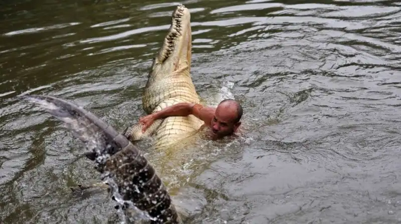 “Почо мой лучший друг. Это опасное занятие, но у нас хорошие отношения”, – рассказывает Чито. По его словам, крокодилу “хватает всего одного взгляда” на хозяина, чтобы забыть о своих инстинктах хищника.