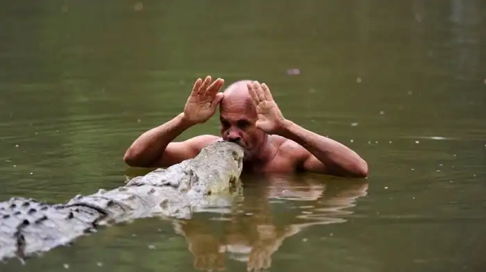 По словам мужчины, их дружба началась более 20 лет назад. Он нашел раненную рептилию на берегу реки, у нее был ранен глаз, кроме того, животное было сильно истощено (оно весило всего 60 кг) и могло погибнуть от голода. Скорее всего, он был подстрелен местным фермером, переживавшим за свой скот.
