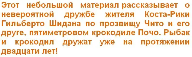 Такие «отношения» между человеком и крокодилом – уникальный в природе случай. Многие журналисты, ученые, специалисты по поведению животных приезжали каждый год в деревушку в 70 км от столицы Коста-Рики, чтобы понаблюдать за феноменом.