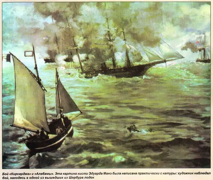 Рафаэль Симмс, естественно, не знавший об этой уловке противника, отважно вышел с ним на поединок. 19 июня 1864 года «Алабама» снялась с якоря и покинула воды Шербурской гавани. Вплоть до границы территориальных вод ее сопровождал французский бронированный фрегат «Коронн», которому было поручено проследить за тем, чтобы нейтралитет Франции не был нарушен. Кроме этого военного корабля к месту предстоящего боя устремилось множество лоцманских лодок и рыбачьих шхун, палубы которых были переполнены любопытными зеваками.