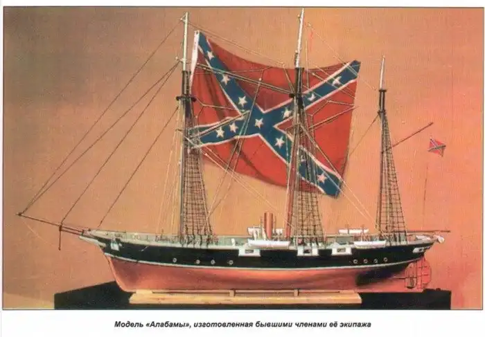Значительно больший успех имели рейдерские операции, совершаемые крейсерами южан. Практически крейсеры занимались тем же, чем и каперы, но в отличие от последних коммерческие рейдеры принадлежали самой Конфедерации (а не частным лицам) и их команды состояли на военной службе во флоте Юга. Наиболее известным из этих крейсеров была «Алабама». Она представляла собой трехмачтовый парусно-паровой шлюп, построенный фирмой «Лэрид» в Ливерпуле. Водоизмещение «Алабамы» составляло 1050 тонн, а ее паруса и машина позволяли развивать скорость до 15 узлов.
