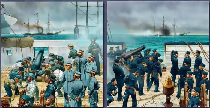 Огонь северян был не таким массированным — они сделали всего 173 выстрела — но значительно более результативным. Старший офицер «Алабамы» вспоминал, как 11-дюймовый снаряд из орудия Дальгрена ворвался на батарейную палубу сквозь пушечный порт и уложил 8 из 16 моряков, обслуживавших орудия. «Люди были разорваны на куски, а палуба усеяна руками, ногами, головами и внутренностями, — вспоминал этот офицер. — Один из помощников кивнул мне головой, как будто спрашивая: «Мне очистить палубу?». Я наклонил голову. Он поднял изувеченные останки и бросил их в море».