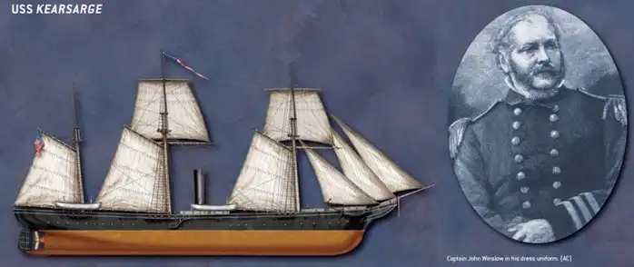 «Алабама» в это время возвращалась в Европу из своего двухлетнего вояжа. За истекшие два года она прошла 75 тысяч миль, захватила и уничтожила более 60 торговых судов Союза, груз которых в общей стоимости оценивался в 6 миллионов долларов. Однако столь долгое боевое плавание сильно потрепало корабль, и теперь он нуждался в ремонте. Для проведения ремонтных работ Симмс выбрал французский порт Шербур, гостеприимно принявший крейсер южан. «Алабама» вошла в гавань 6 июня 1864 года, а через несколько дней у Шербура появился «Кирсарж», который вел капитан Джон Уинслоу.