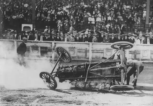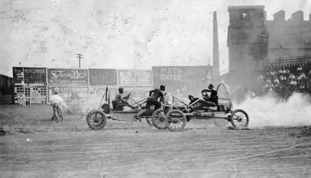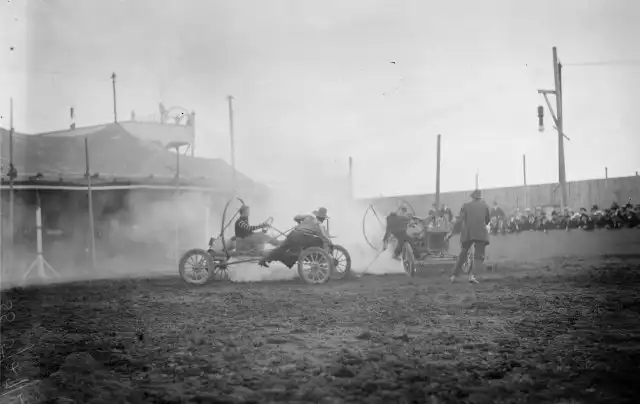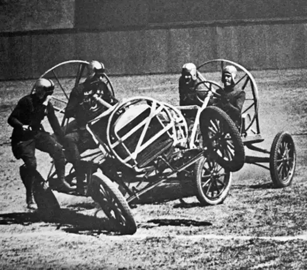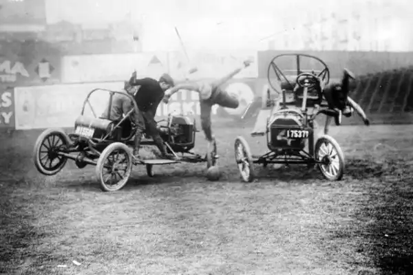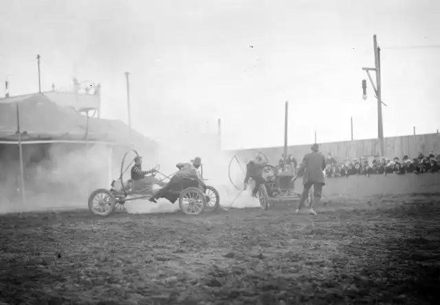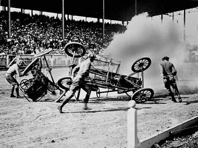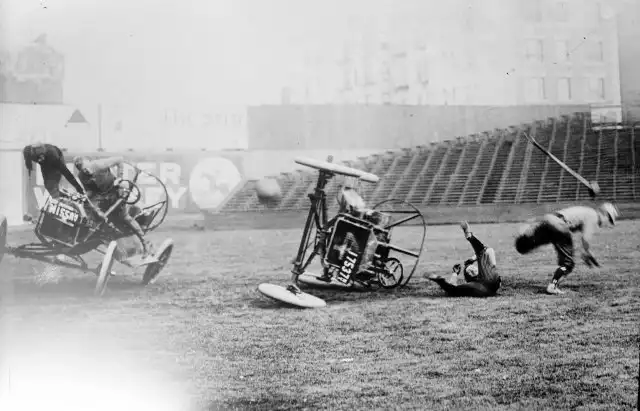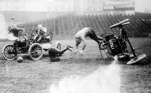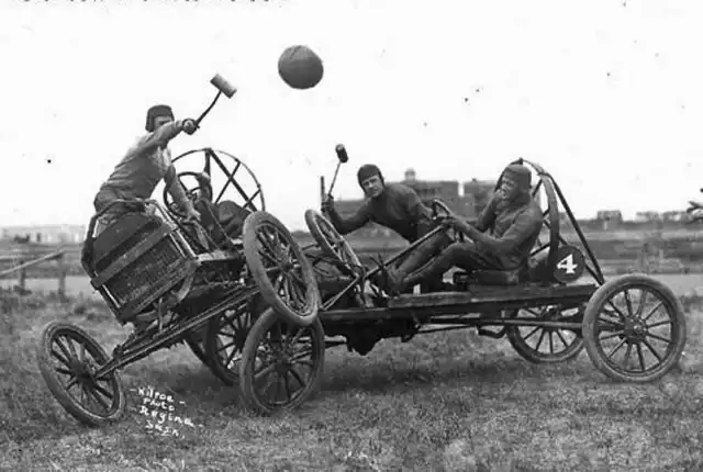 Было это в далеком 1911-м году. Первая же официальная игра проходила на поле клевера в городке Уичито, штат Канзас. Тогда сошлись четыре автомобиля по два человека в каждом. За игрой наблюдало порядка пяти тысяч зрителей.