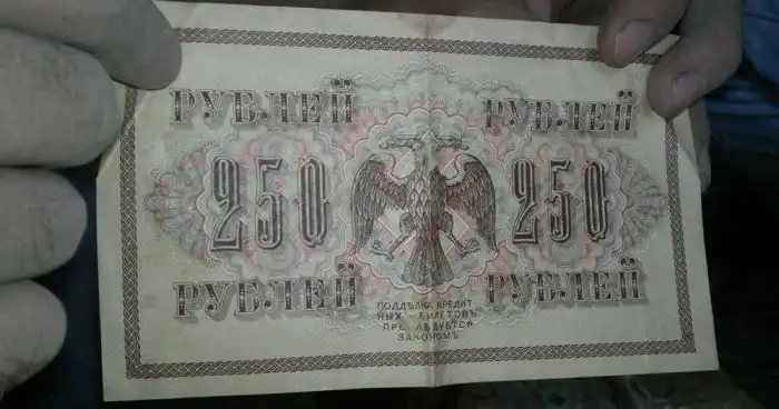 Купюры самого разного номинала, вплоть до 250 рублей.
