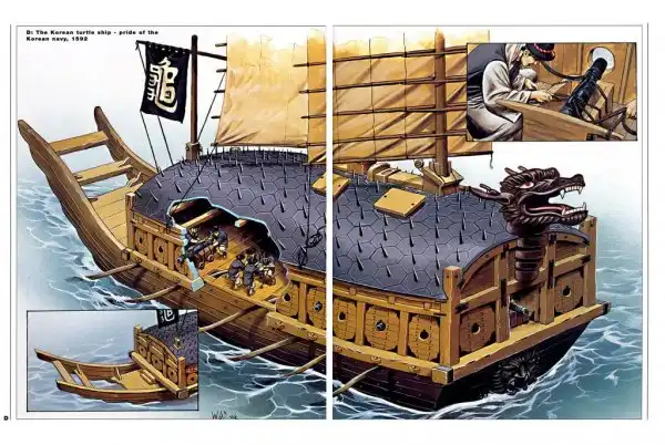 А вот корейскому адмиралу Ли Сунсину с одной такой новинкой, можно сказать, повезло. Если он ее и не сам придумал, то, вне всякого сомнения, с успехом применил. Речь идет об уникальном для Средневековья оружии, называвшемся кобуксон, или корабль-черепаха.