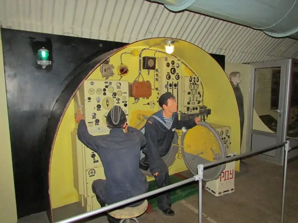 Склад для хранения ядерных боеприпасов подводных лодок – как крылатых ракет, так и торпед – был сдан в эксплуатацию в 1963 году. И вход, и выход из арсенала в сторону водного канала защищался противоударными и герметически закрывающимися воротами, которые вместе со шлюзовыми камерами обеспечивали надежную защиту персонала от всех поражающих факторов ядерного взрыва. Вес лишь одной створки ворот составлял 10 тонн, а ее толщина равнялась 60 сантиметрам. Двери из листовой стали весили по 480 килограммов каждая. Служили в арсенале только мичманы и офицеры, дававшие подписку «о неразглашении». Ядерные боеприпасы перевозили на специальной тележке вручную (!), а ее колеса для защиты от статического электричества обшивались латунью. Поскольку сегодня в «противоатомном сооружении» музей, то и эту самую тележку, и еще многое другое можно теперь увидеть в качестве экспонатов. При этом в самом помещении для хранения обычных и ядерных зарядов размещены две музейные экспозиции: «История создания и развития Военно-морских Сил Вооруженных Сил Украины» и «Минно-торпедное вооружение».