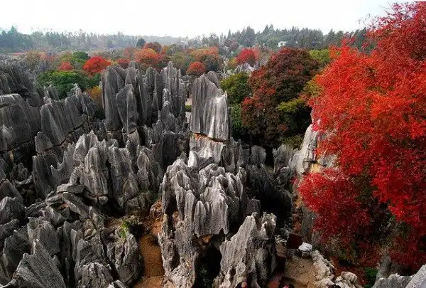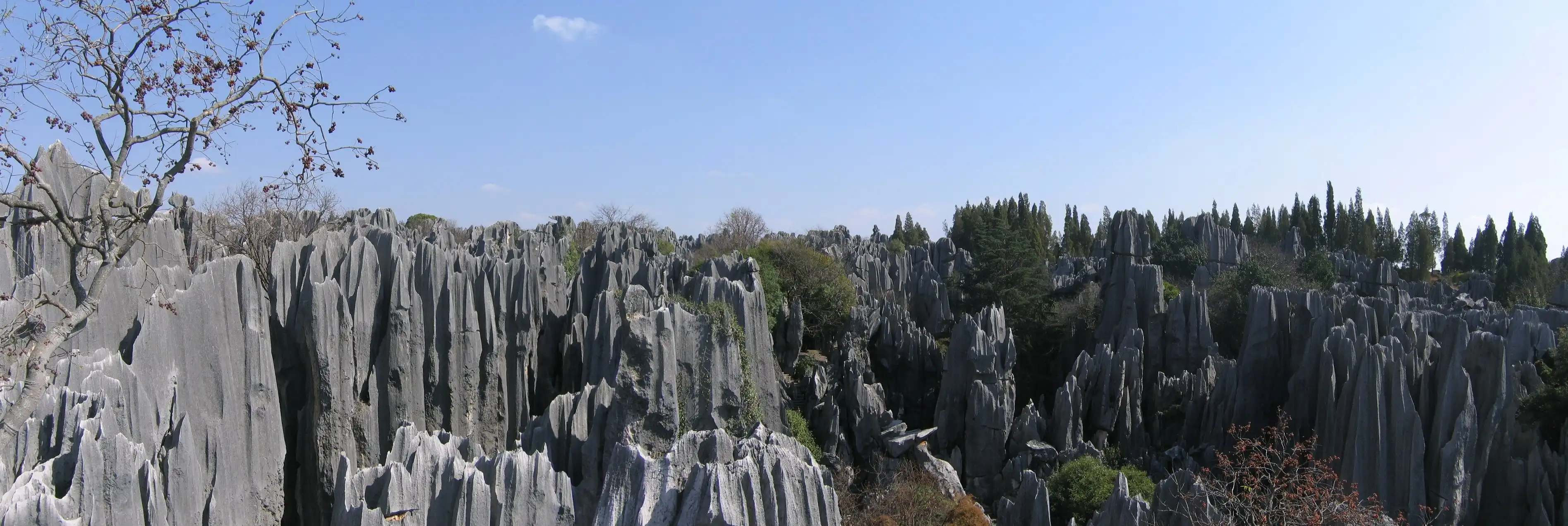 Занимая площадь более 26 000 гектаров, китайский каменный лес охватывает большую часть провинций Гуанси, Юньнань и Гуйчжоу. Каменный лес Найгу в Шилине, самой впечатляющей части провинции Юньнань, может похвастаться разнообразием форм и цветов. Также известные как Чёрный каменный лес или просто Шилинь благодаря близости к одноимённому городу, эти поразительные известняковые образования вырастают прямо из земли, как кальцинированные деревья, создавая уникальную иллюзию каменного леса или окаменевшего шторма на море.