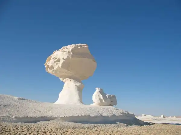 Сахара эль Бейда, как называют её местные жители, или просто Белая пустыня, находящаяся в непосредственной близости от оазиса Фараффа в Ливийской пустыне, это дом для уникального геологического явления. Странные фигуры из мягкого мела белого и кремового цвета продолжают изменяться под зубилами ветра.