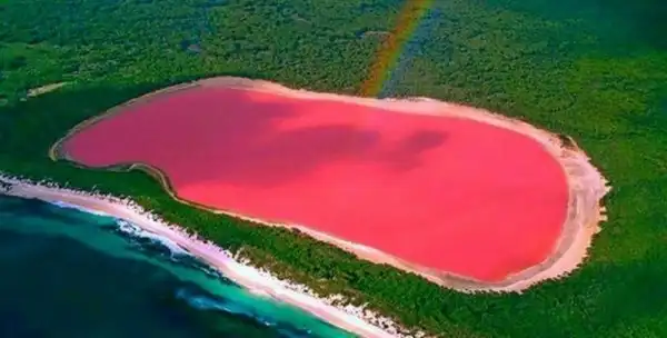 Это не огромная жевательная резинка и не клубничный молочный коктейль. Это всего лишь озеро на острове Средний в Австралии. Правда, выглядит оно так, будто там пролили какую-то странную розовую субстанцию. Достигающее в длину 600 метров озеро Хиллер отделено от океана узкой полоской земли и окружено оправой из белого песка и густого леса, удивительно контрастирующего со странно окрашенной водой, в которой точно захотели бы искупаться инопланетяне.