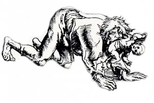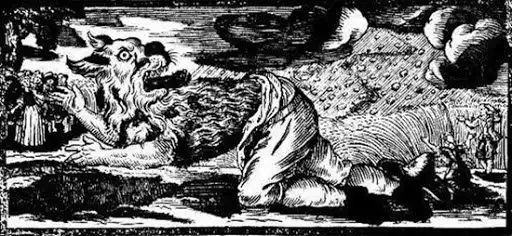 Суеверные свидетели после охоты за «оборотнем» заявляли, что он, прячась за кустом, сделал последнюю отчаянную попытку вернуть себе человеческий облик, но его схватили, когда он снимал кожу.
